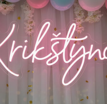 Išskirtinės neono dekoracijos jūsų šventei. Neradote tinkamo užrašo? Susisiekite: gaminame ir nuomojame personalizuotus neono ženklus.